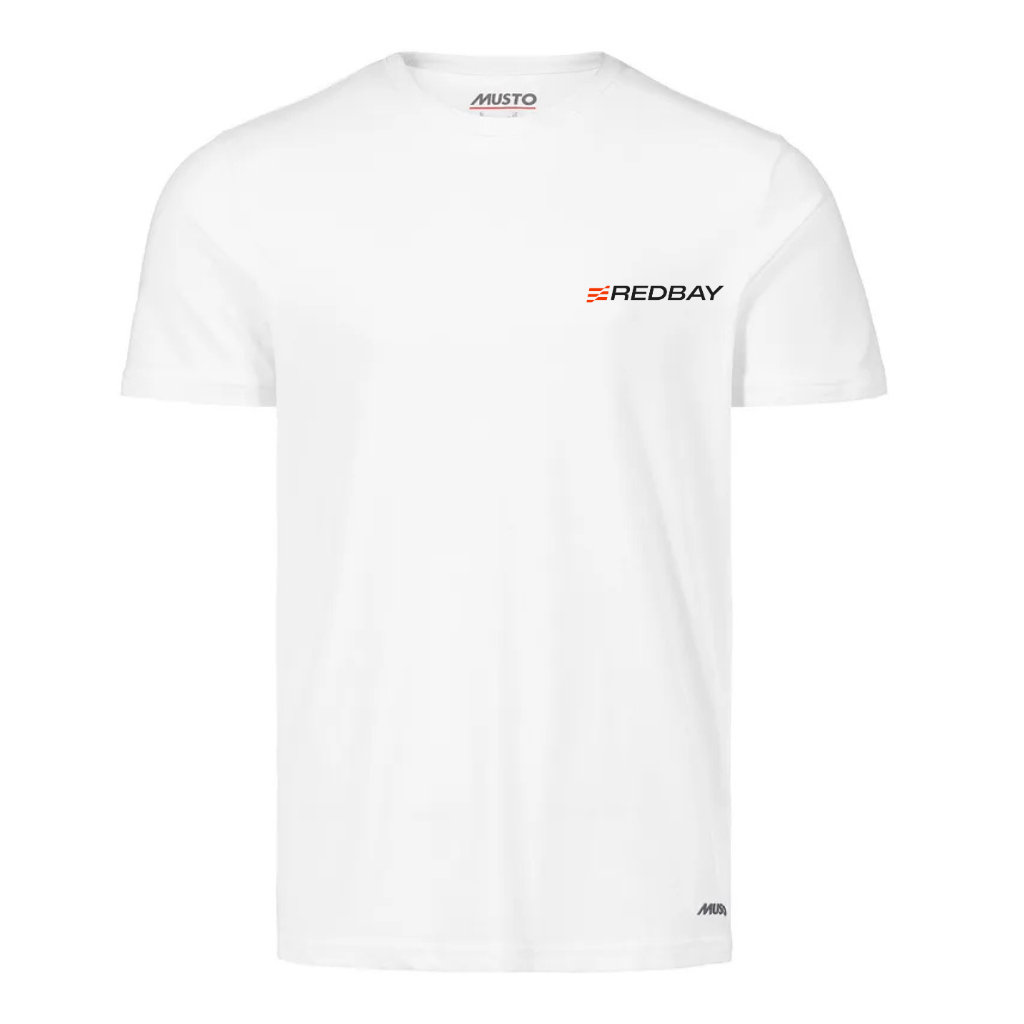 Iconic Branding: The classic Redbay Boats logo is prominently displayed on the chest